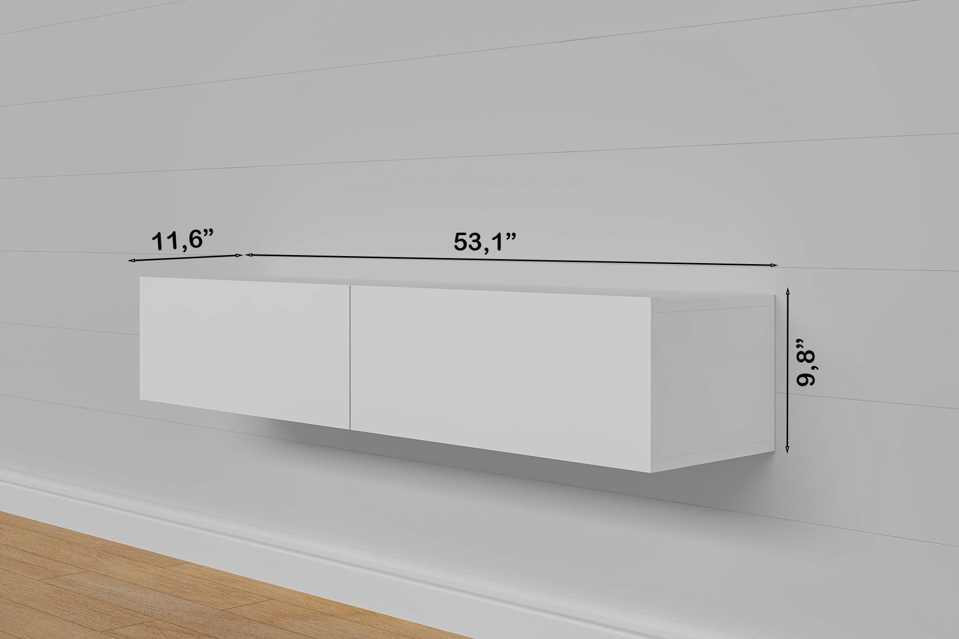 The Housley 53" Floating TV Stand combines sophisticated minimalist design with practical functionality, making it an ideal choice for modern living spaces. This wall-mounted console accommodates TVs up to 70 inches while its compact 12.5" depth maximizes floor space, perfect for contemporary and narrow rooms. Two spacious 26.5" cabinets provide organized storage for media, gaming consoles, electronics, and decorative items, while the open area beneath invites creative styling with baskets or additional furnishings. The floating design creates visual lightness and allows flexible use of your floor space, delivering both aesthetic appeal and intelligent storage solutions for the discerning homeowner.
