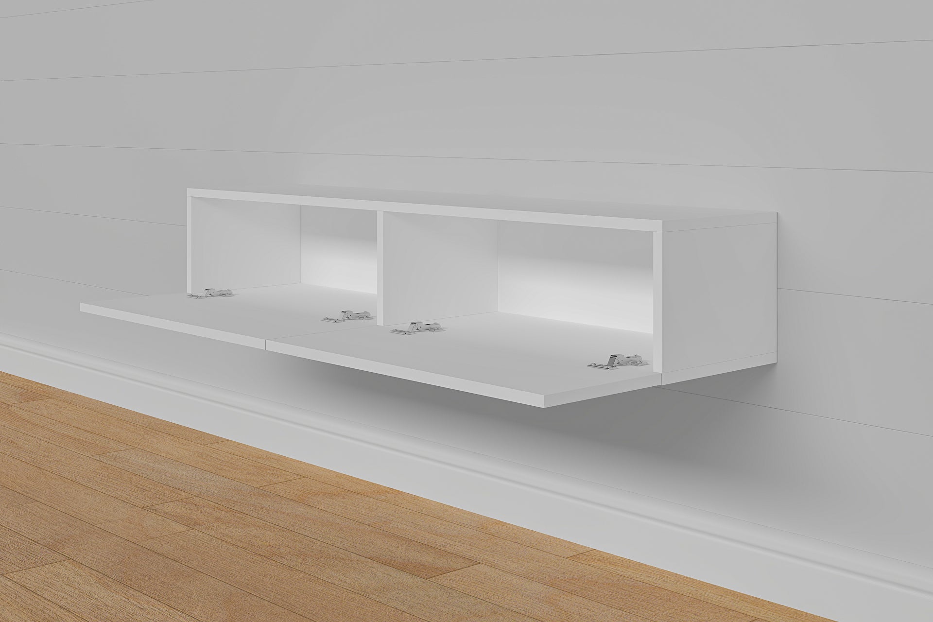 • Wall-mounted Space: The wall-mounted design creates an open space beneath the stand, perfect for storing baskets, toy boxes, and other items